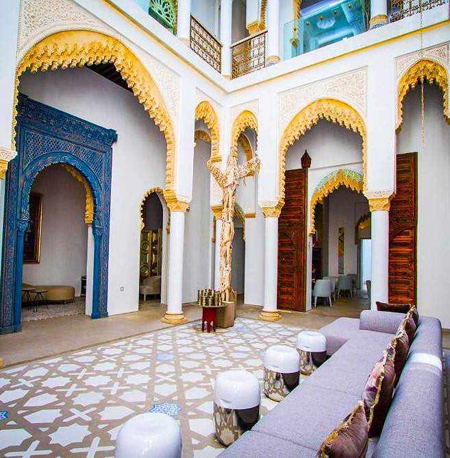 Located in the heart of Rabat’s medina, Euphoriad is a charming riad combining traditional Moroccan architecture with contemporary design. Formerly the residence of the Pasha of Rabat, it offers a refined setting with elegant rooms, a traditional hammam, and a panoramic terrace with a swimming pool. Just a few steps from the Kasbah of the Oudayas, the Hassan Tower, and the Mausoleum of Mohammed V, this riad is ideal for exploring the capital in an intimate and luxurious atmosphere. Rabat-Salé Airport is a 20-minute drive away.