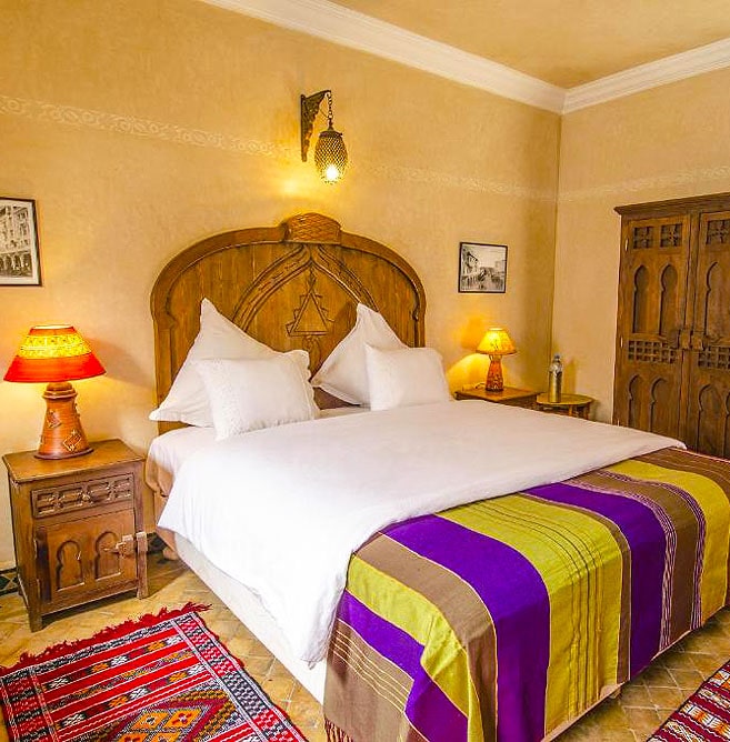 Riad Sidi Fatah is a charming guesthouse nestled in the heart of Rabat’s medina, in the lively jewelers’ district. Just a few minutes’ walk from the ocean and major historical sites, it offers an authentic and welcoming setting. Its air-conditioned rooms, decorated in a traditional Moroccan style, feature private bathrooms and free Wi-Fi. Guests can enjoy a continental breakfast each morning and Moroccan cuisine on request. A peaceful terrace overlooking the medina is the perfect place to relax after a day of exploring.