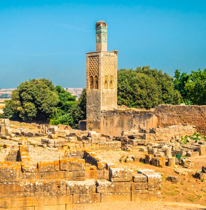 According to historians and archaeologists, Chellah was undoubtedly the oldest human settlement at the mouth of the Bouregreg River. This is evidenced by the numerous trading posts founded on the Mediterranean and Atlantic coasts by the Phoenicians and Carthaginians. Perched on a hill overlooking the river, the Chellah necropolis is a magical place shrouded in mystery. As soon as visitors pass through the large octagonal Merinid gate, they are immersed in a fairy-tale world where the remains of the Roman and Merinid empires coexist in perfect harmony. A long, pleasant paved path lined with a variety of trees and fragrant flowers welcomes visitors. The minaret of the old mosque, decorated with polychrome tiles, dominates the site. Not far away is a pond strewn with coins, where fish, turtles, and eels swim peacefully.