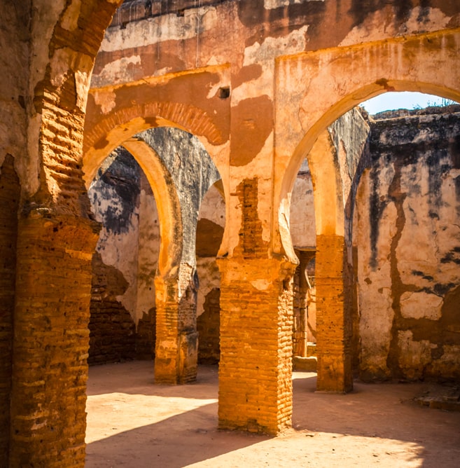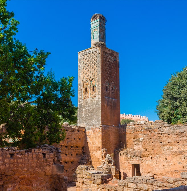 Built in the 14th century by the Merinids on the ruins of the ancient Roman city of Sala Colonia, Chellah is located 2 km from the city center outside the Almohad walls.