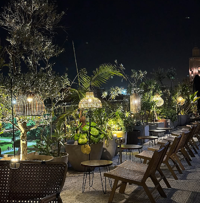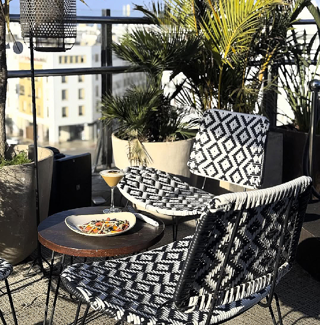 Situé au cinquième étage de l’hôtel ONOMO Rabat Terminus, AZOUR est un rooftop et lounge offrant une vue spectaculaire sur Rabat. Ce lieu allie harmonieusement les influences marocaines, méditerranéennes et subsahariennes, pour une expérience culinaire raffinée. Avec une atmosphère élégante et contemporaine, AZOUR est l’endroit idéal pour savourer des cocktails créatifs ou des plats délicieux, tout en profitant de l’ambiance vivante et de la vue panoramique.
