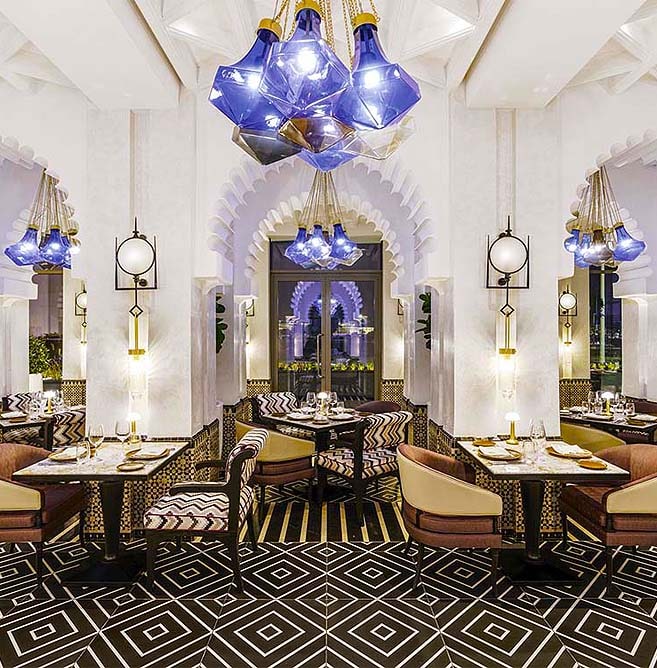 Dahlia est un restaurant situé au sein du Fairmont La Marina Rabat-Salé. Il offre une expérience culinaire marocaine et levantine authentique avec une touche moderne. Le menu présente des plats traditionnels réinventés avec des ingrédients biologiques marocains de qualité. L’atmosphère chic du lieu crée un cadre parfait pour un dîner élégant, en harmonie avec le menu sophistiqué.