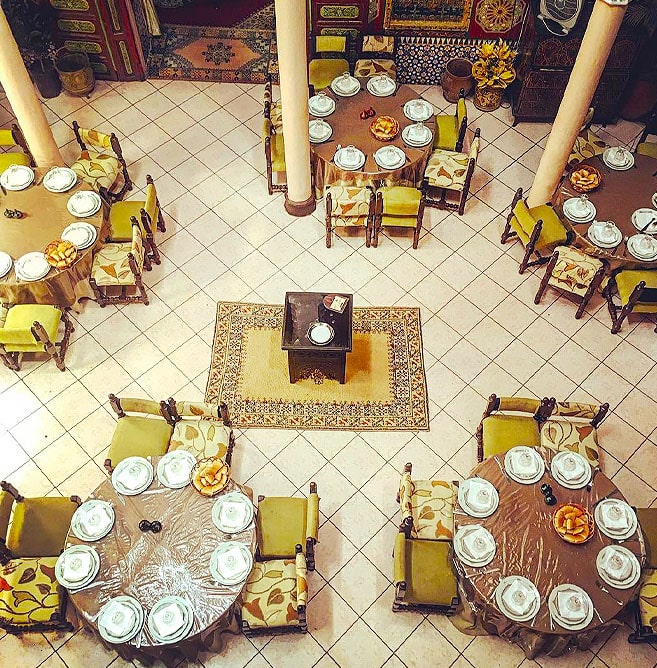 Dar Rbatia (Rabat, Médina) est un restaurant marocain emblématique, fondé en 1989, situé dans une bâtisse du XVIIIᵉ siècle. Il propose une cuisine traditionnelle marocaine, mettant en avant des plats tels que des salades variées, tajines, couscous et pastillas, ainsi que du thé à la menthe. Le cadre est chaleureux et authentique, avec une décoration qui reflète la culture marocaine. Le restaurant peut accueillir jusqu’à 180 personnes, parfait pour des repas en famille ou des événements.