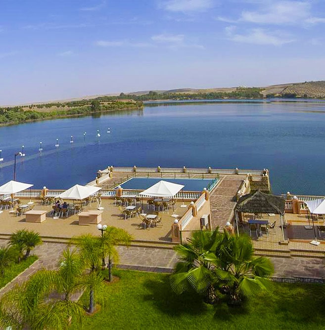 Situé à proximité du lac de Daït Erroumi, à Khemisset, l’hôtel Dar Eddaya offre un cadre paisible au cœur de la nature. Entouré de collines verdoyantes, il séduit par son atmosphère reposante, ses chambres confortables avec vue sur le lac ou le jardin, et sa piscine invitant à la détente. Un lieu idéal pour une escapade nature, entre tranquillité, confort et authenticité.