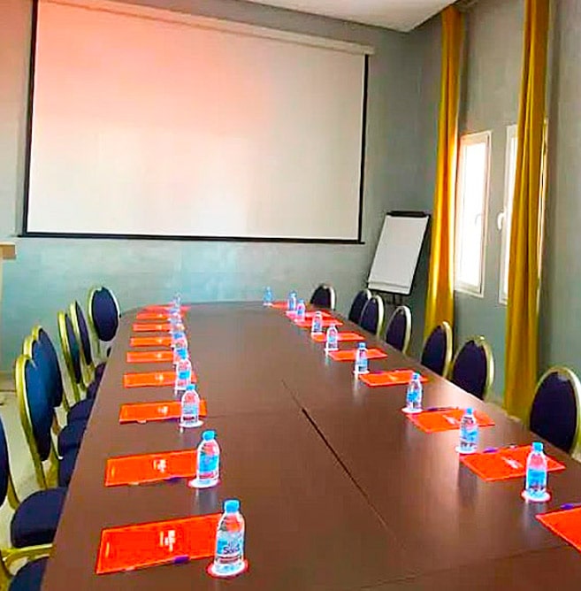 Le Relax Hôtel Kénitra propose une salle de réunion moderne et bien équipée pour l’organisation d’événements professionnels. Adaptée aux séminaires et conférences de taille moyenne, la salle peut accueillir jusqu’à 50 personnes. Elle est équipée de matériel audiovisuel, de Wi-Fi gratuit et de tables de réunion confortables. Cet hôtel offre un cadre agréable et fonctionnel pour les événements d’affaires dans un environnement calme et relaxant.